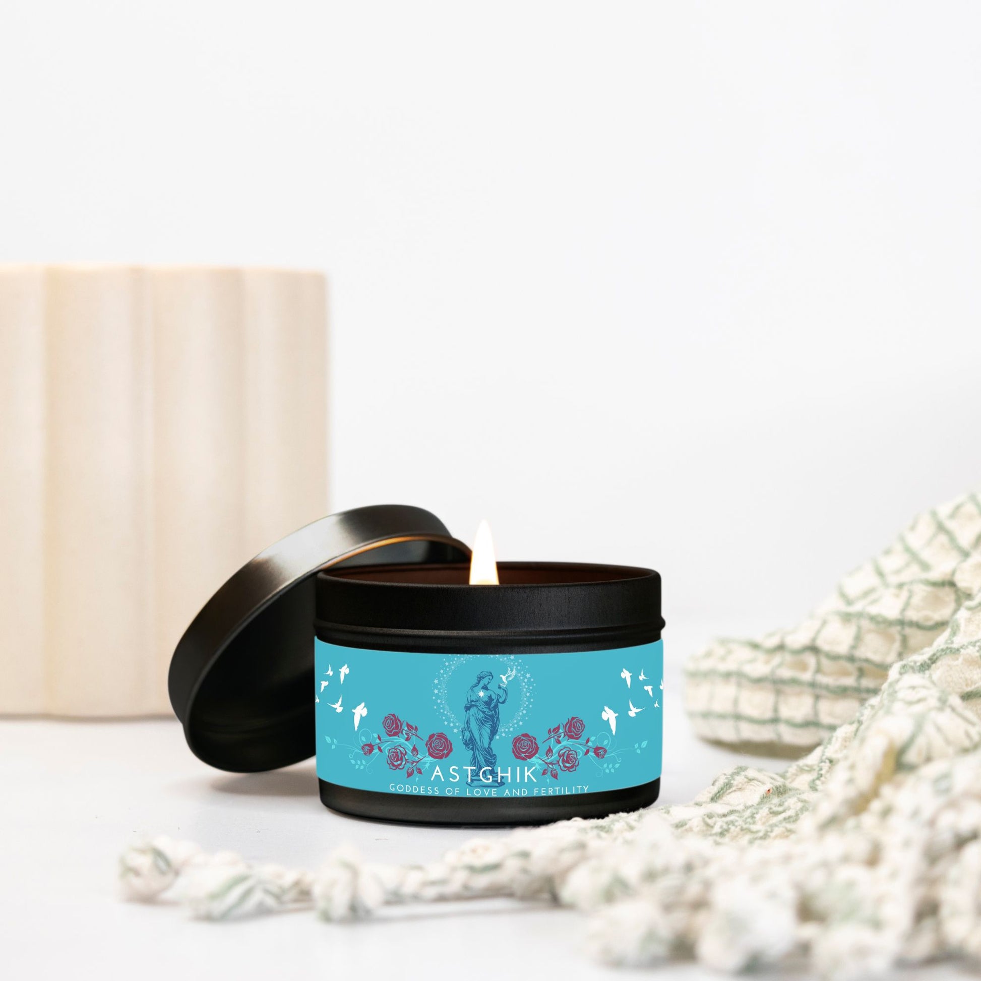 This high quality 4oz hand-poured candle makes a wonderful devotional and ritual item, gift, or party favor. Great for small spaces and traveling too. The coconut soy wax is a vegan blend, gluten-free, toxin-free, paraben free, phthalate free, and comes from renewable sources.