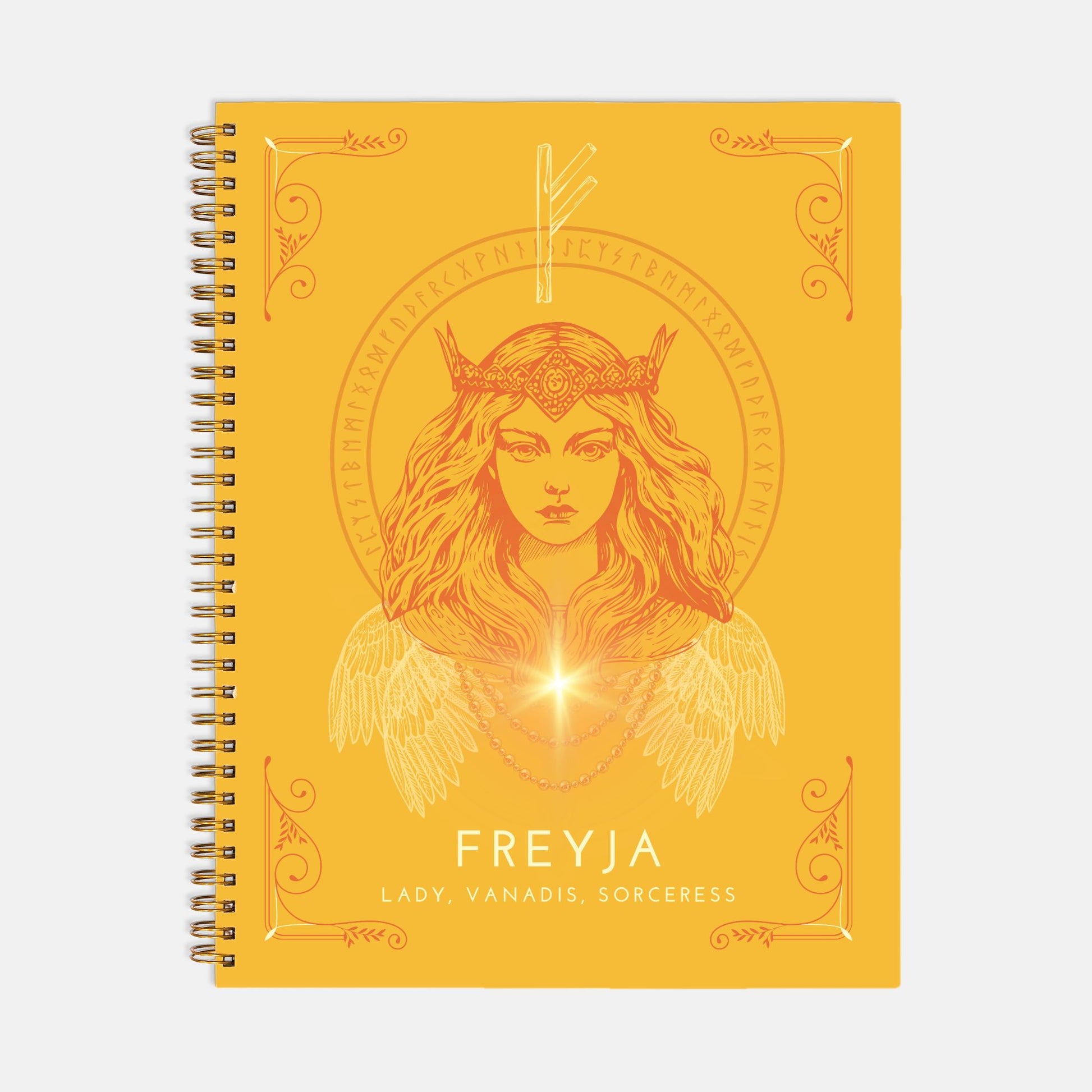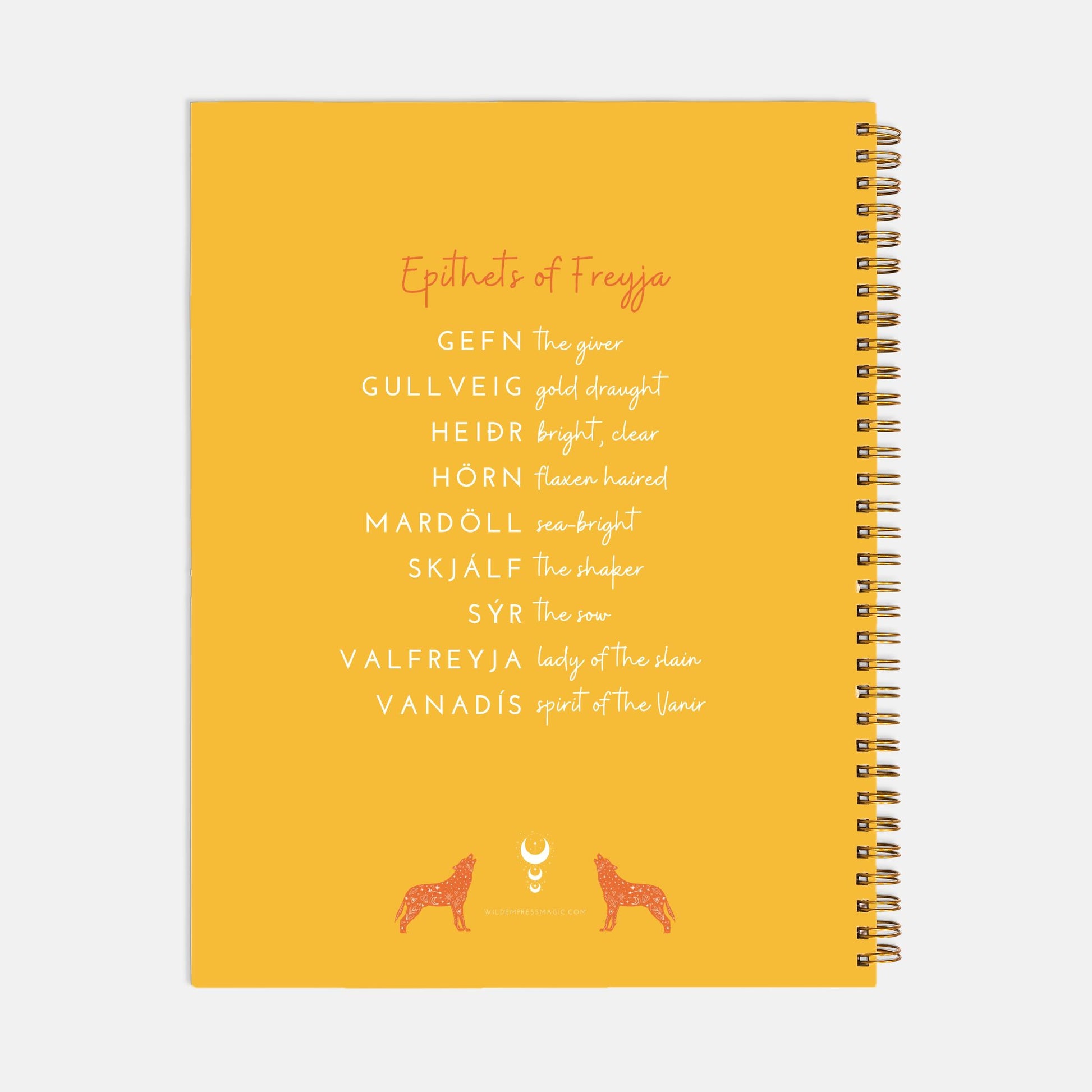Are you looking for a reliable, versatile, easy-to-use weekly planner that calls in the magic of your favorite Goddess? Freyja graces the front of this gorgeous 8.5" x 11" hardcover spiral bound lifesaver, and the back features her many epithets. The calendar pages include 2025-26 year at a glance, plus both weekly and monthly entries that you can customize with the numerical dates. There is plenty of room in each entry to keep all your vital, magical details in place and even for bullet journaling if that's your fancy. There is even a page of accent stickers at the back to give you a reminder or pop of color.