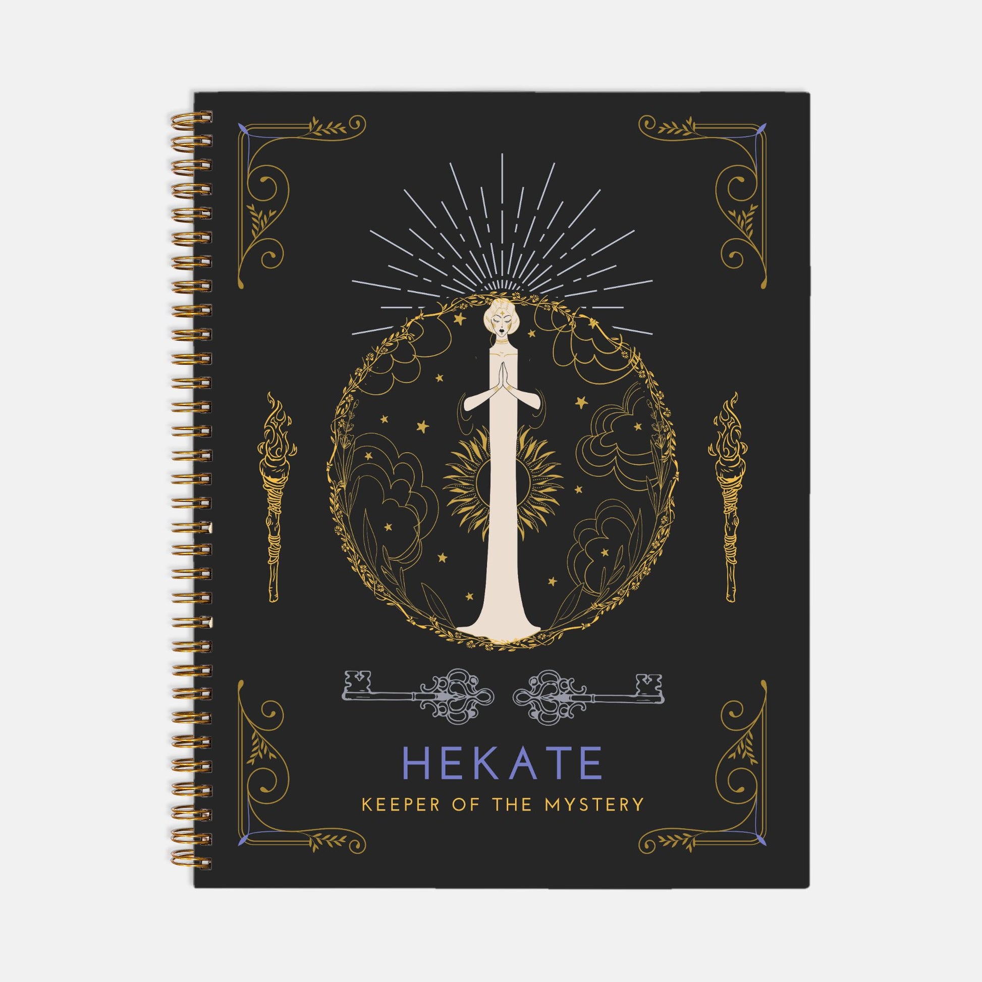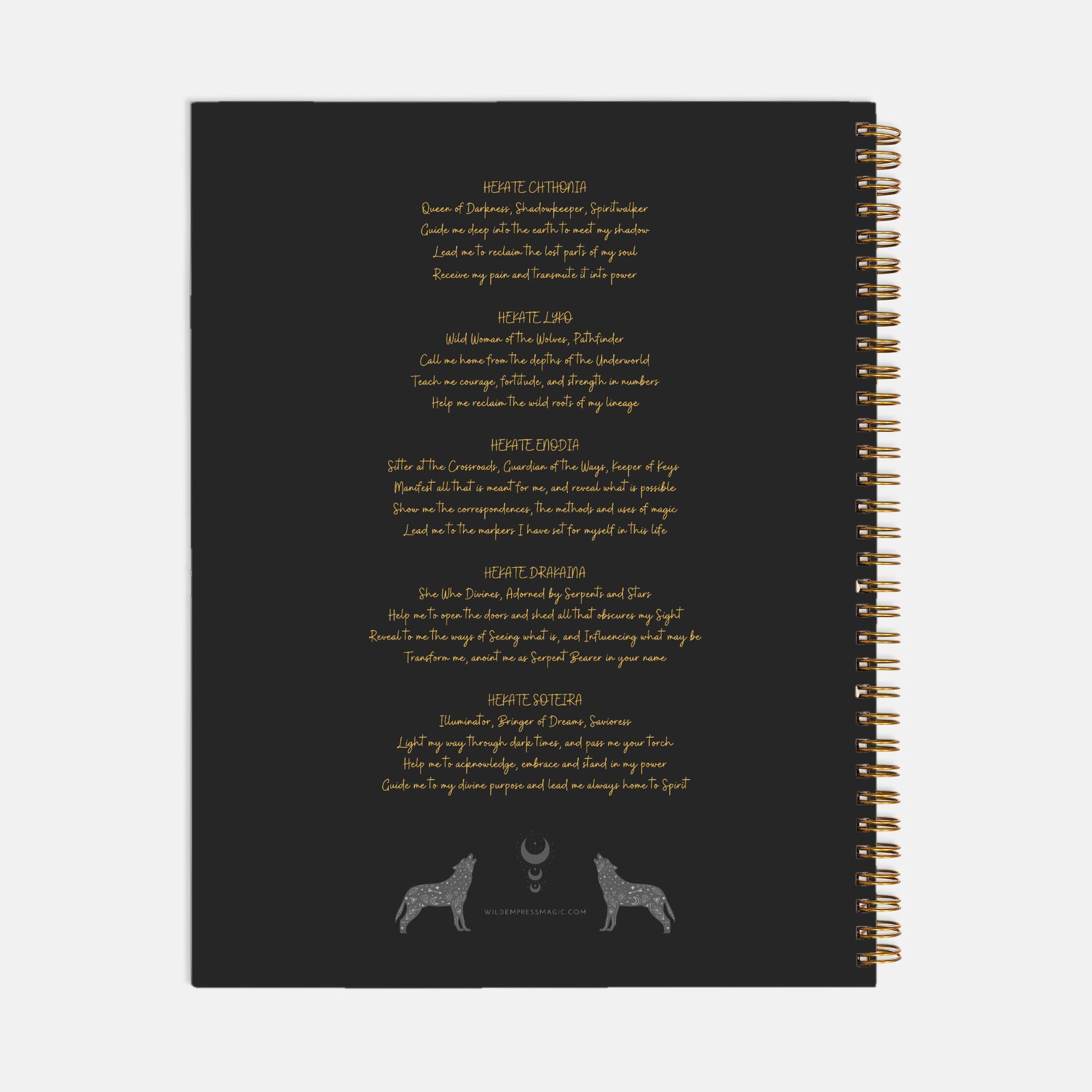 Are you looking for a reliable, versatile, easy-to-use weekly planner that calls in the magic of your favorite Goddess? Hekate graces the front of this gorgeous 8.5" x 11" hardcover spiral bound lifesaver, and the back features a prayer to her in five epithets. The calendar pages include 2025-26 year at a glance, plus both weekly and monthly entries that you can customize with the numerical dates. There is plenty of room in each entry to keep all your vital, magical details in place and even for bullet journaling if that's your fancy. There is even a page of accent stickers at the back to give you a reminder or pop of color.